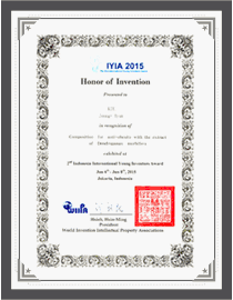 - Won Certificate of Participation at 2015 IYIA by IFIA (International Federation Inventors’ Associations)